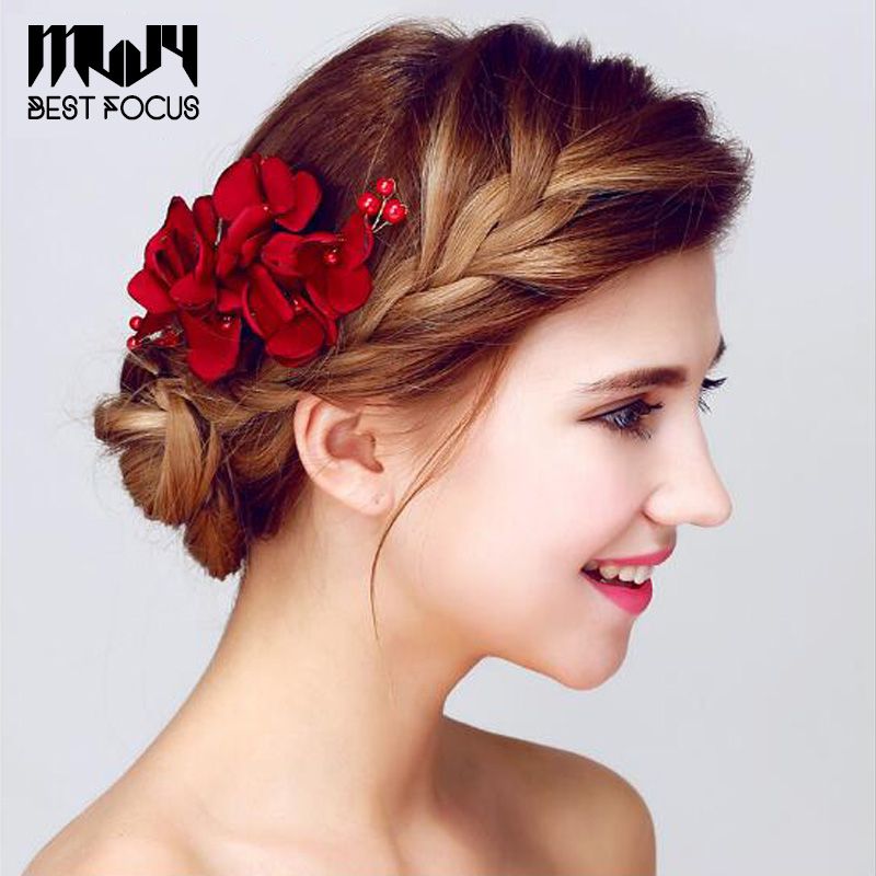 2019 New Fashion Red Flower Hair Brush Hair Accessories For Women Wedding Bridal Hair Jewelry From Mljy 19 1 Dhgate Com