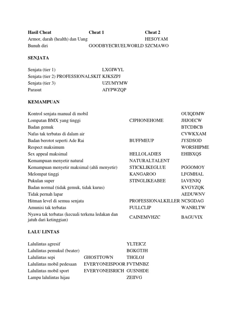 Cheat Gta B Indonesia Docx Cheat Gta San Andreas Lxgiwyl