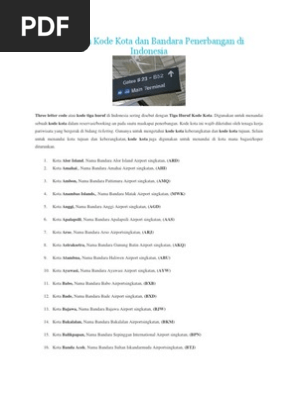 Kode Bandar Udara Beberapa Kota Di Indonesia Interkoneksi
