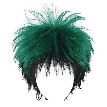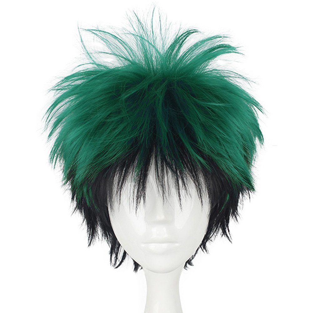 Mersi Mens Anime Cosplay Wig Green Black Short Fluffy Wig Male Costume Wigs S022