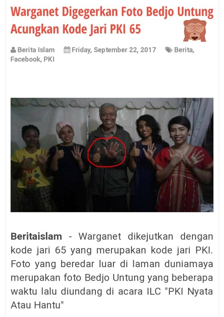 Bagi yang ingin tahu lebih banyak soal ingat65 silakan jelajahi esai esai dari anak muda mengenai tragedi 1965. Warganet digegerkan foto bedjo untung acungkan kode jari pki 65 hallo sahabat islam nusantara pada artikel yang anda baca kali ini dengan judul warganet digegerkan foto bedjo untung acungkan kode jari pki 65 kami telah mempersiapkan artikel ini dengan baik untuk anda baca dan ambil informasi didalamnya. Sebelum masuk lebih dalam.