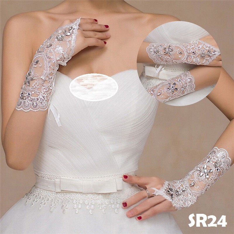 Kode Sr24 Sarung Tangan Pengantin Tanpa Jari Renda Anggun Elegan