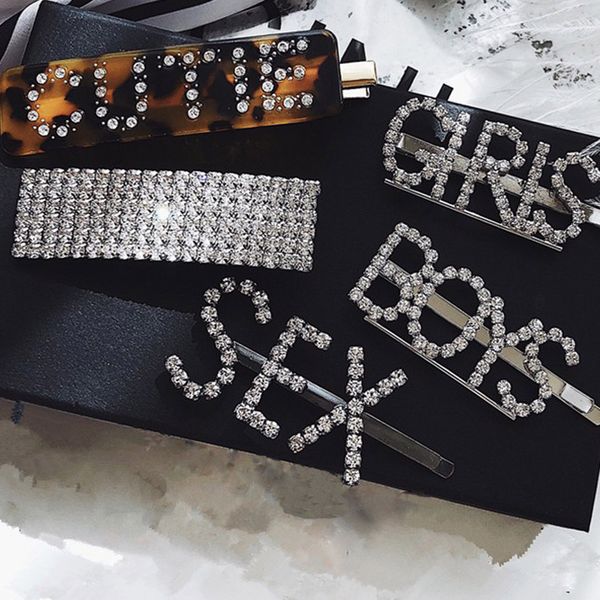 Sweet Acrylic Crystal Rhinestone Hairpins Girls Women S Leopard Letter Rectangle Hair Clips Grips Hair Accessories For Gifts Bridesmaid Hair