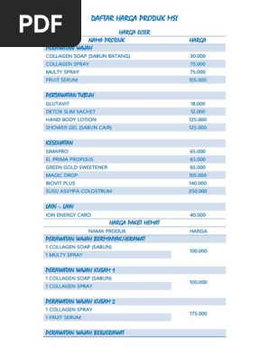 Katalog Harga Kebersihan Perawatan Tubuh Msi Kosmetik Dan