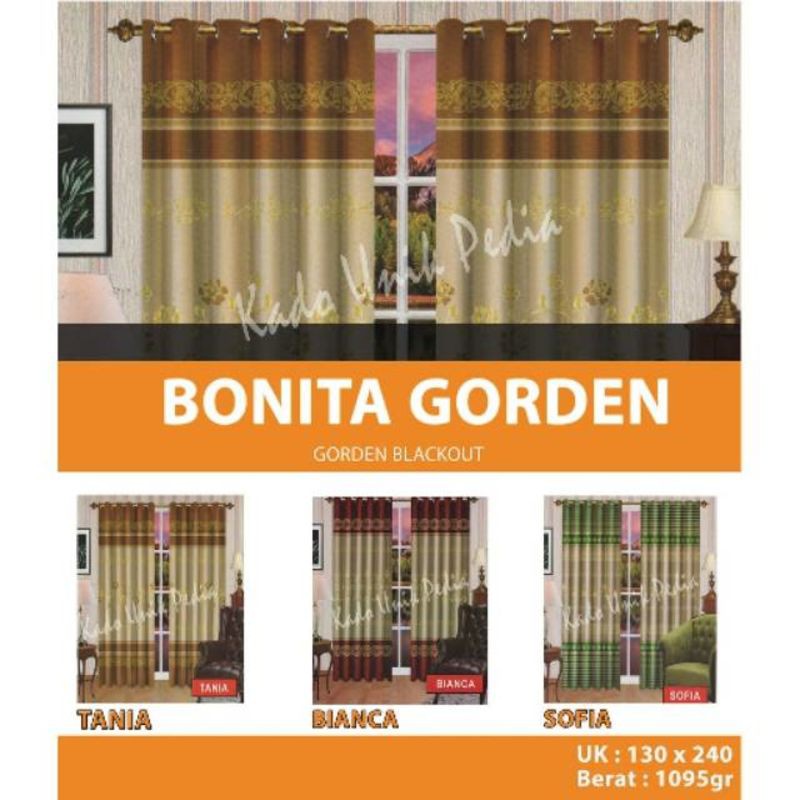 Harga gorden bonita terbaru. Lebar 100cm tinggi 230cm 12 lubang smockling dan 1 tali gorden harga rp 85000 gorden jendela rumah minimalis terbaru bahan blackout original gread a tebal tida tembus sinar matahari lebar bahan 140 tinggi 2 meter. Pembayaran mudah pengiriman cepat bisa cicil 0. Bonita original gorden motif selena ukuran 130 x 220 dan 175 x 220 b182702.