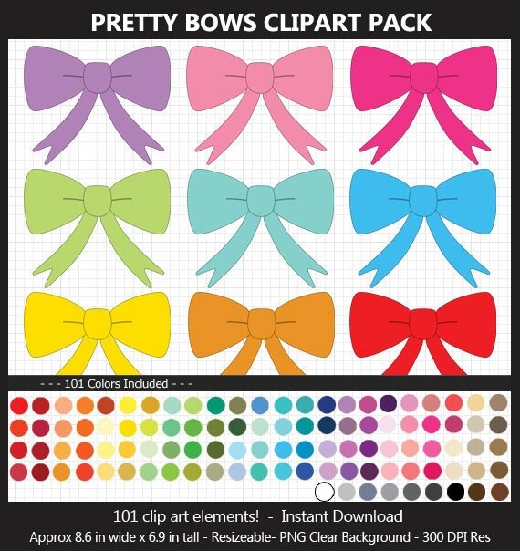 Large Pretty Bows Clipart 101 Colors Printable Hair Bow Girl Planner Sticker Iron On Transfer Scrapbook 8 Inches Decoration Cuok