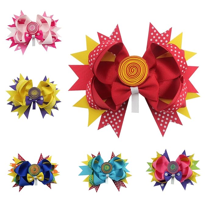 6 Pcs 4 5 Boutique Spike Stacks Girls Hair Bows Hair Clips
