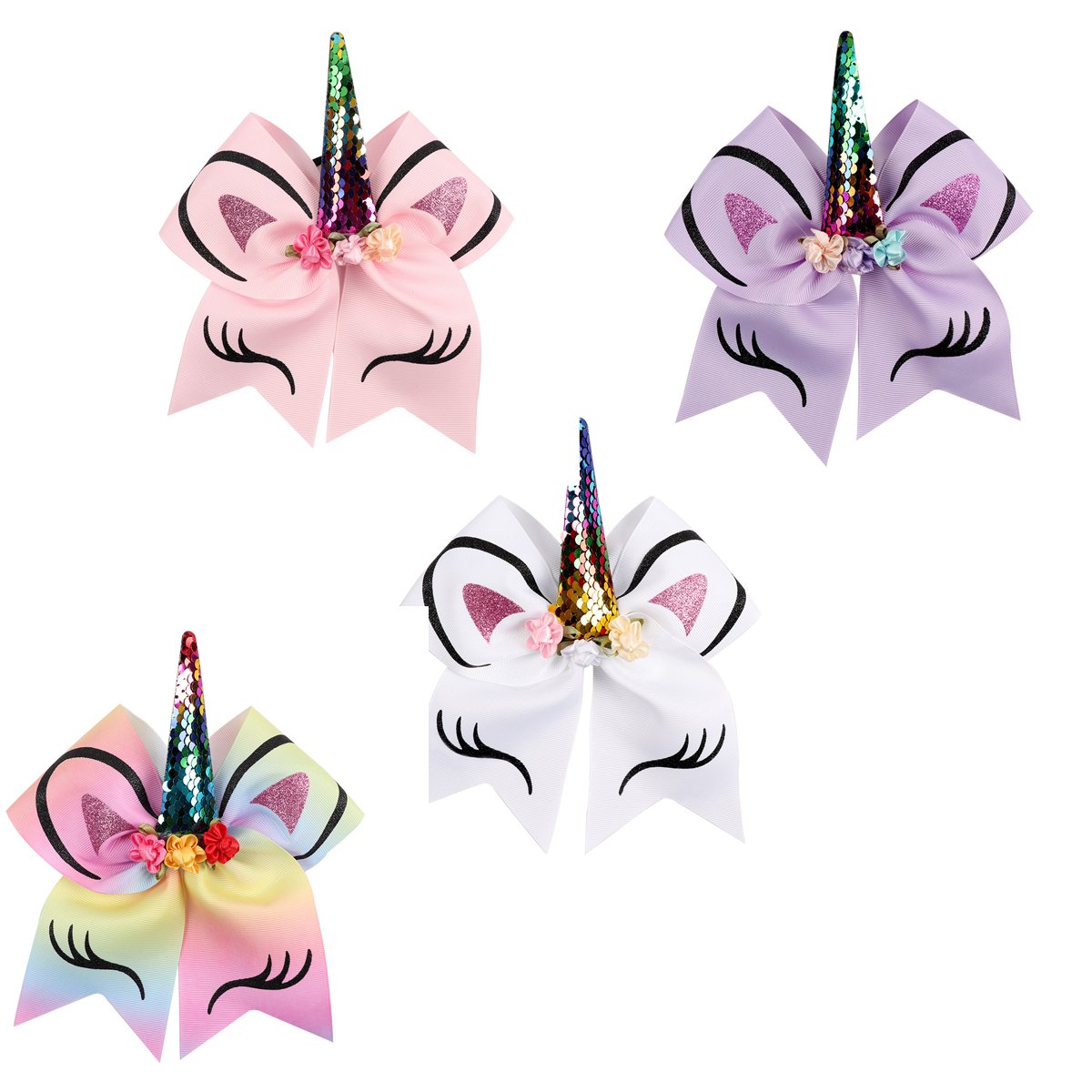 7 Large Unicorn Cheer Bows Girls Hair Bows With Elastic Band For Teen Girls