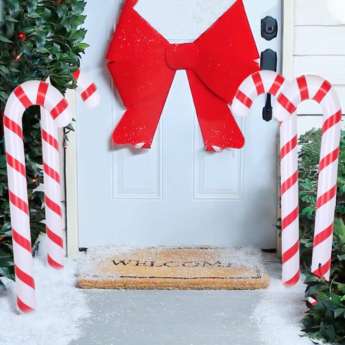 3 easy christmas decorations red & white candy cane fabric banner. We added large fluffy candy cane ornaments, fancy glittered ornaments from at home, and red and white ornaments from walmart. 9 pieces christmas inflatable candy canes for christmas decorations candy canes balloons 3 colors outdoor candy decorations for christmas home decorations party supplies. Buy today & save, plus get free shipping offers on all party supplies. You will receive a zig zagged tree with a blue star and red bow, crossed candy canes with a light pink bow, and.